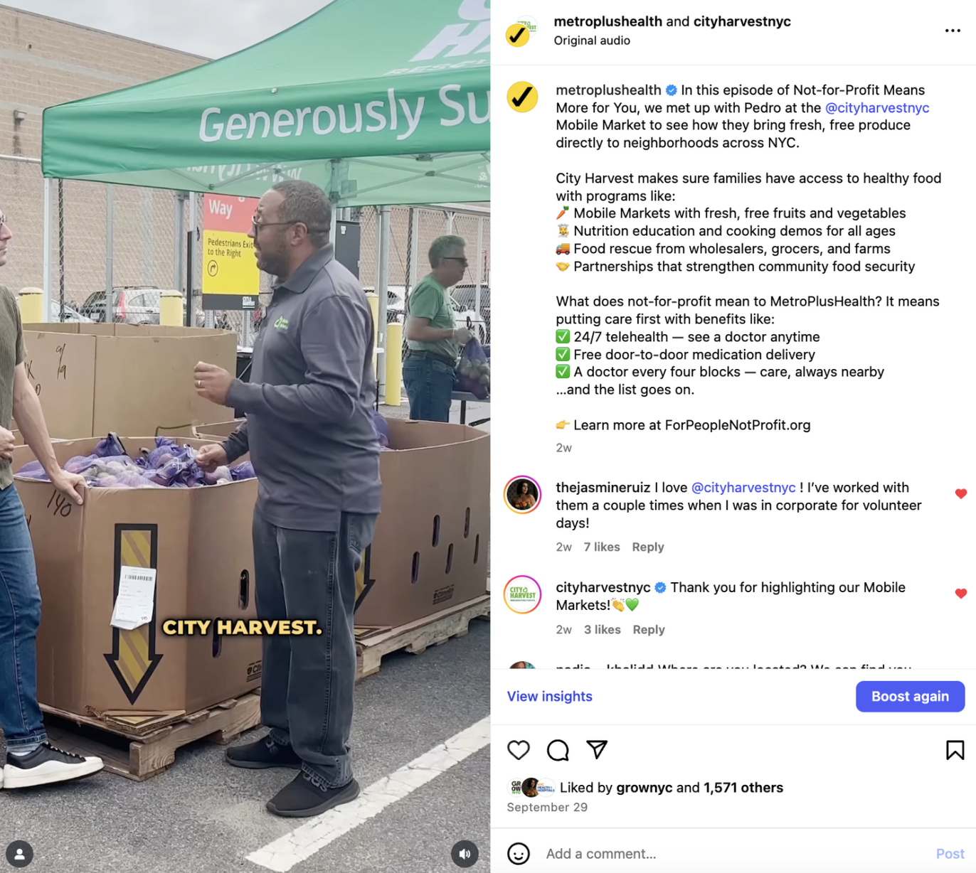One of my favourite projects for MetroPlusHealth was for our Not-For-Profit Means More for You Campaign. I started this project by researching exciting NYC Not-For-Profit organizations and crafting proposals for social media collaborations with them.
